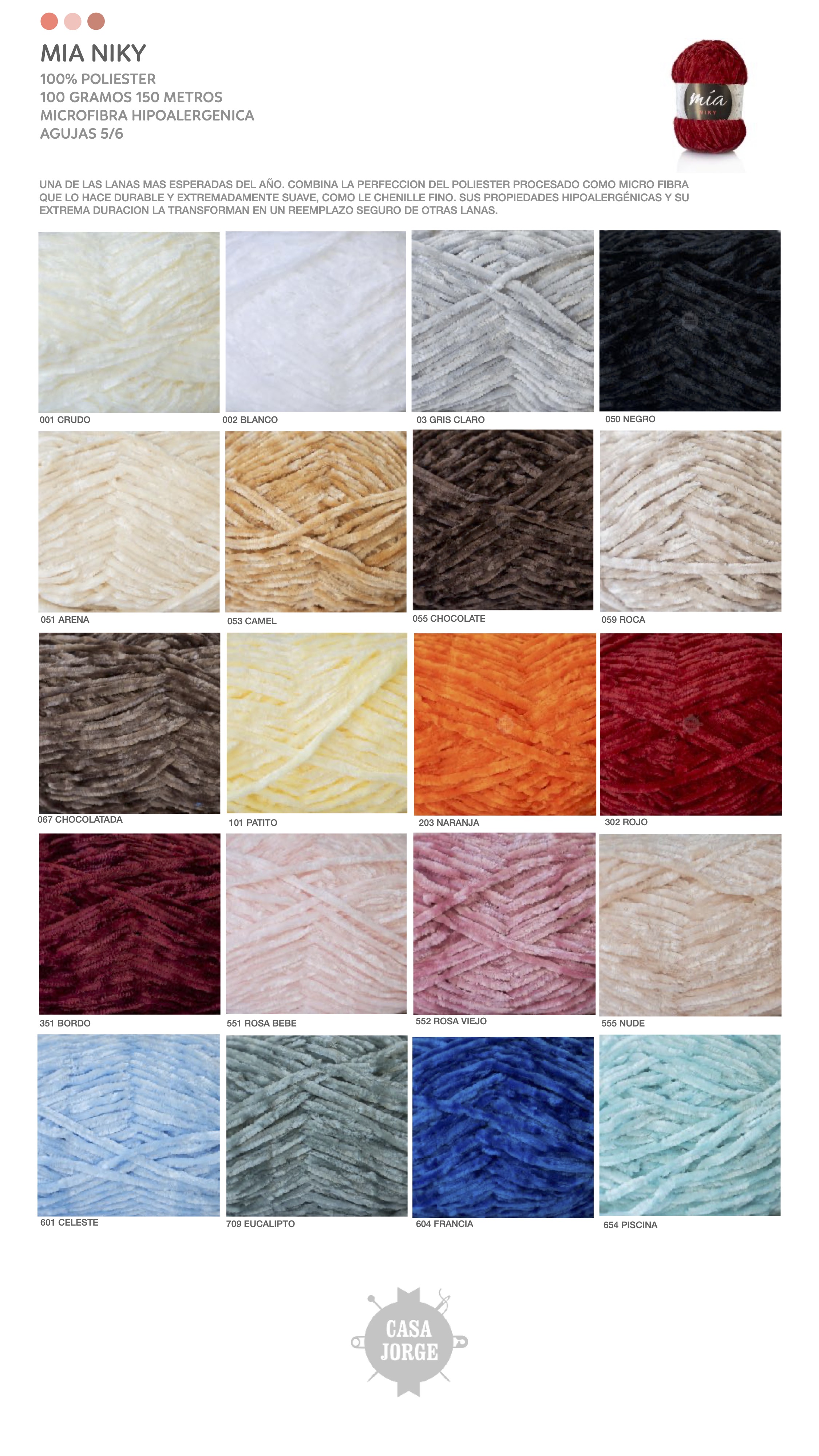LANAS CHENILLE GRUESA NIKY PRESENTACION OVILLO DE 100 GRAMOS POR KILO
