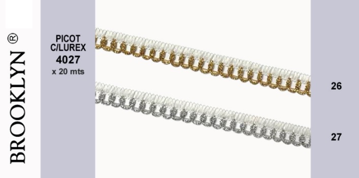 CINTAS PICOT CON LUREX MARCA BROOKLYN DE 10 MM ART 4027 POR 20 METROS