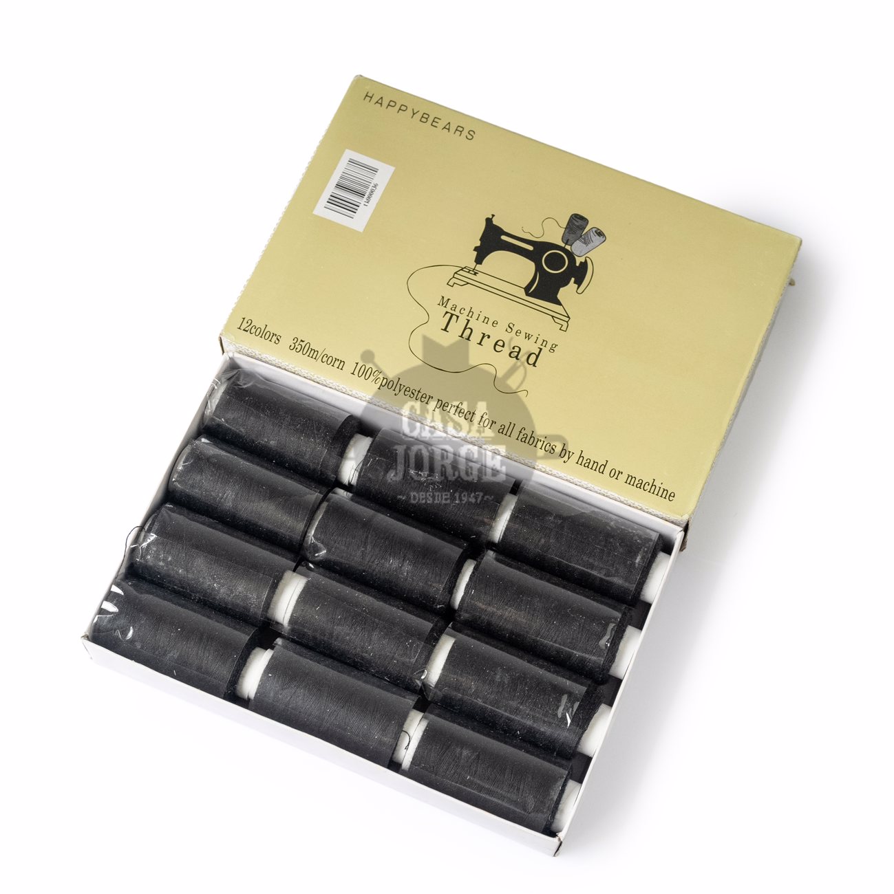 HILOS 100 % POLYESTER TK 12 BOBINAS DE 350 METROS NEGRO