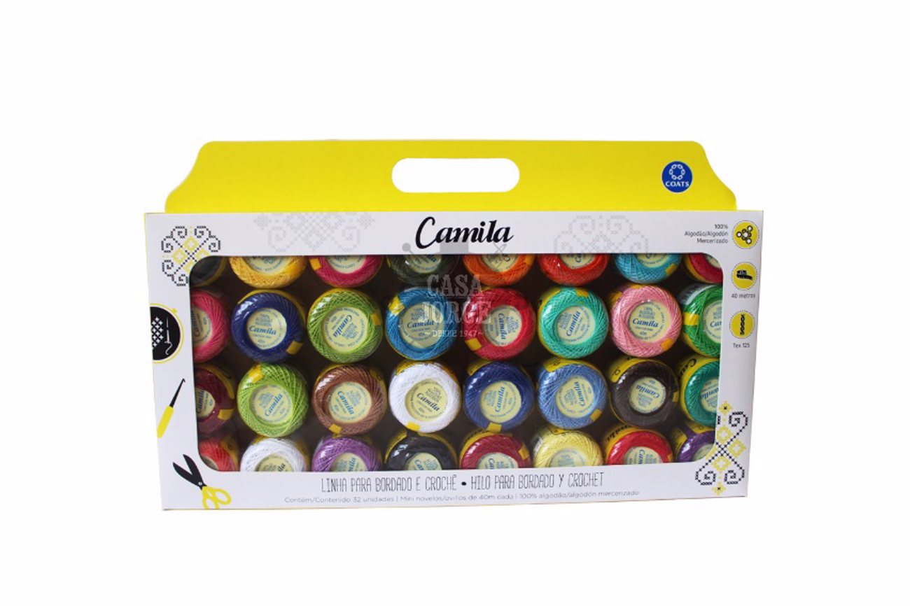 COFRE HILOS DE ALGODON CAMILA PARA BORDADO Y CROCHET EN OVILLOS DE 40 METROS POR 32 UNIDADES