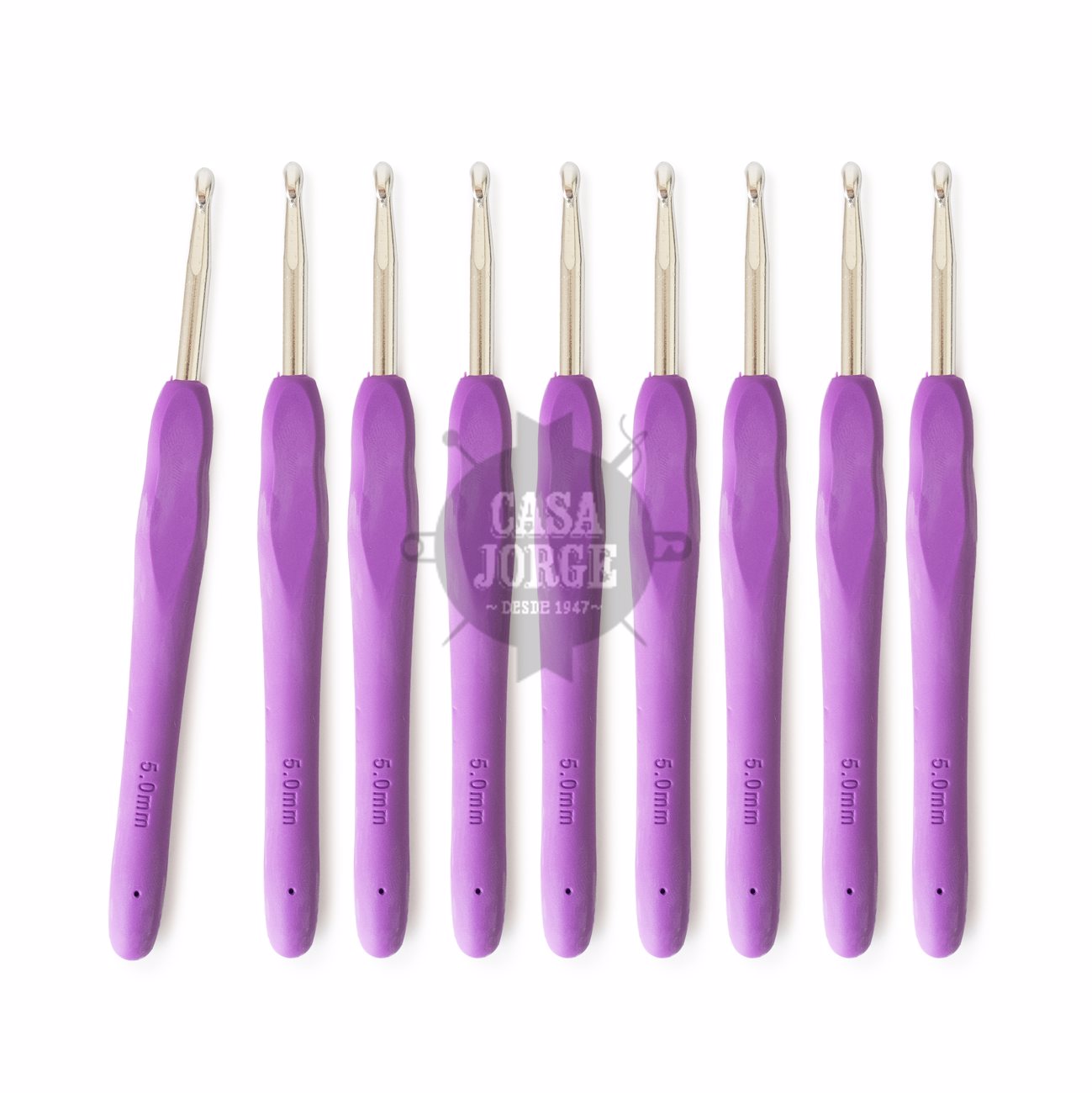 AGUJAS CROCHET CON MANGO DE SILICONA TK N° 5 POR 9 UNIDADES
