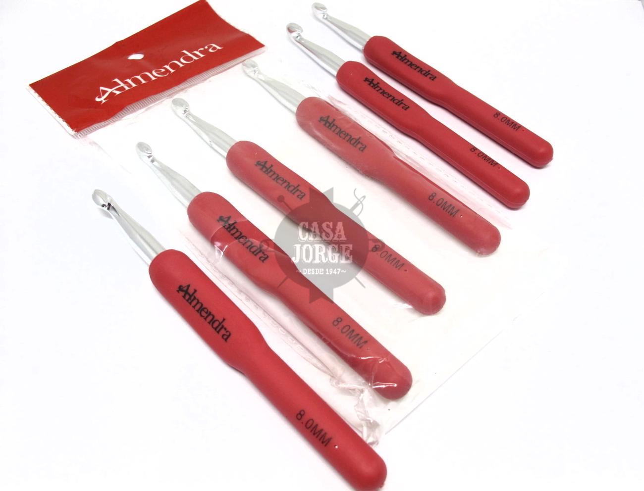 AGUJAS CROCHET ALMENDRA CON MANGO SILICONADO NUMERO 8 POR 6 UNIDADES