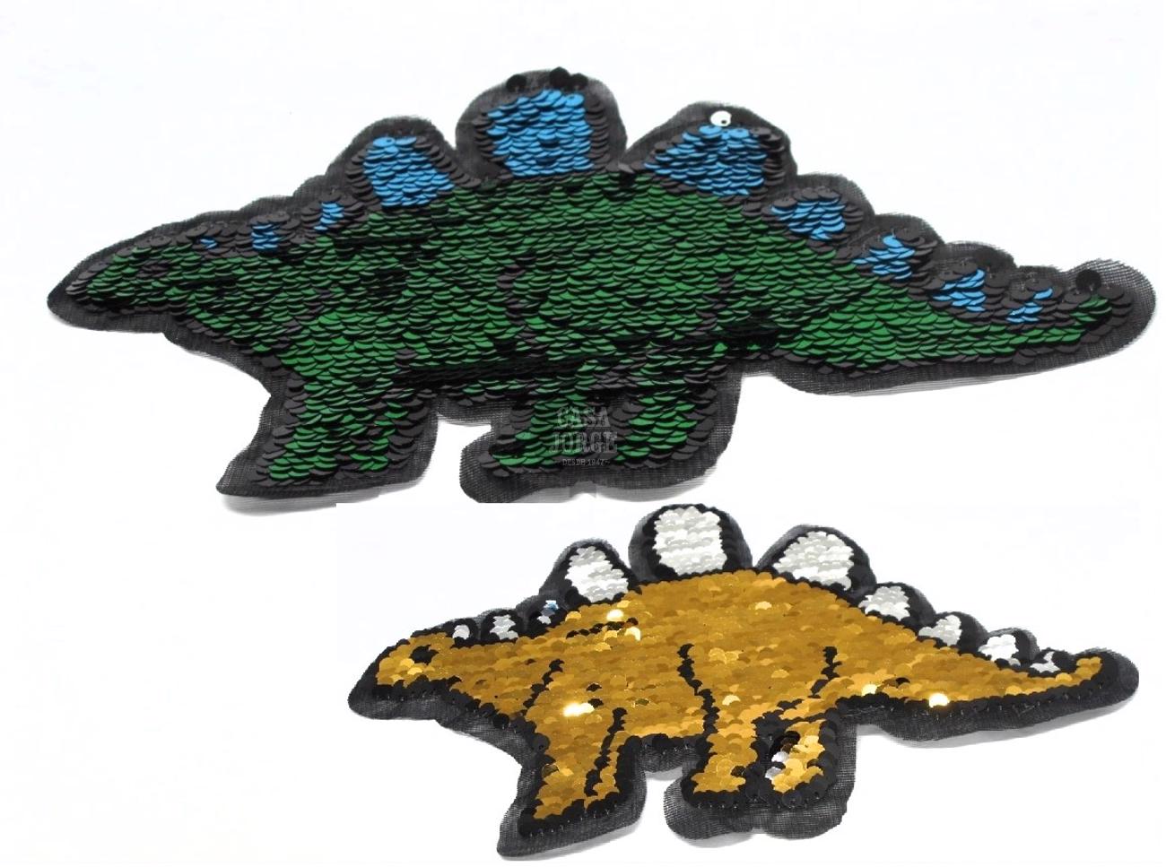 APLIQUES PARA COSER DINOSAURIO DE LENTEJUELA REVERSIBLE ART 2663 DE 175 POR 260 MM POR UNIDAD MINIMO 50 UNIDADES