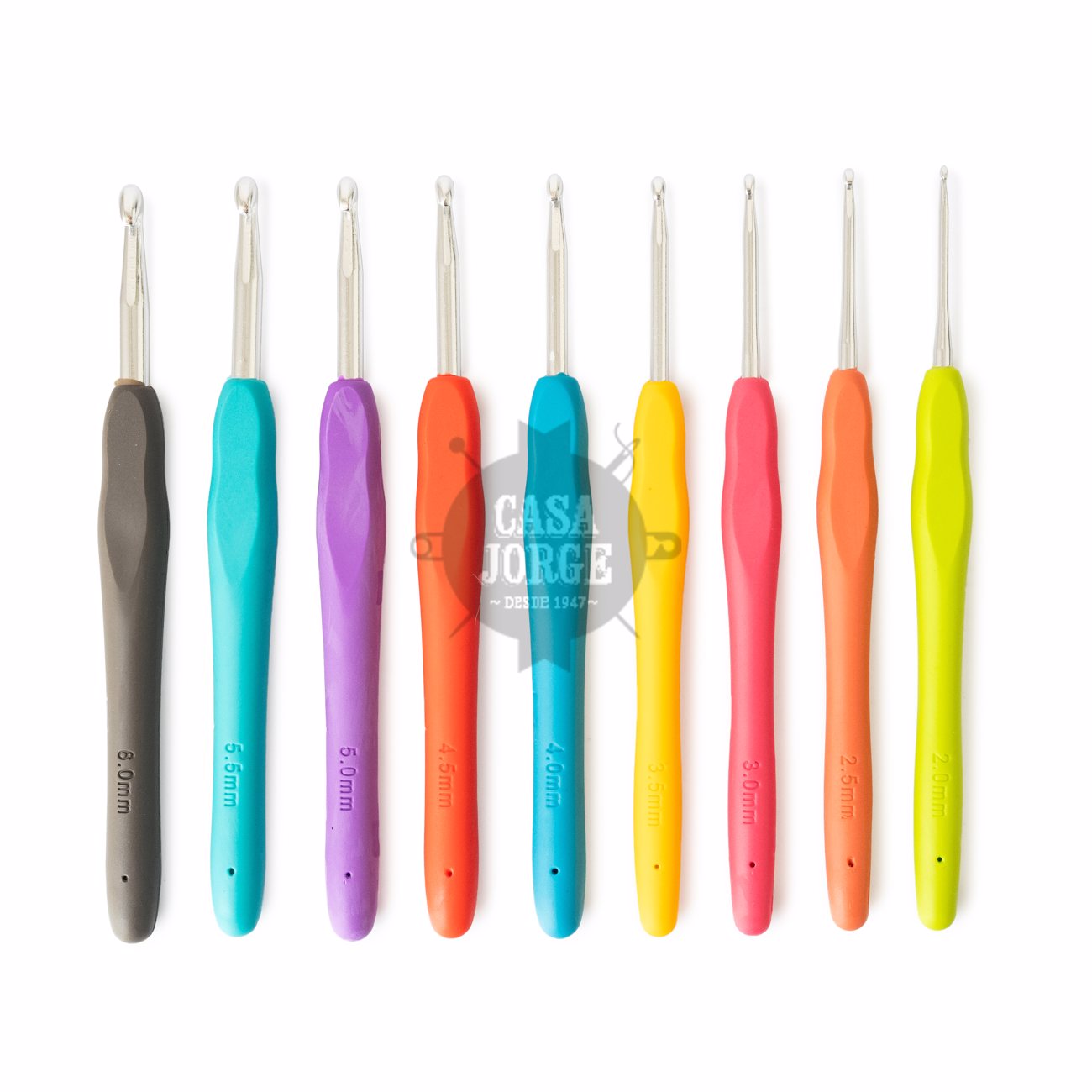 AGUJAS CROCHET CON MANGO DE SILICONA TK N° 2 AL 6 POR 9 UNIDADES SURTIDO