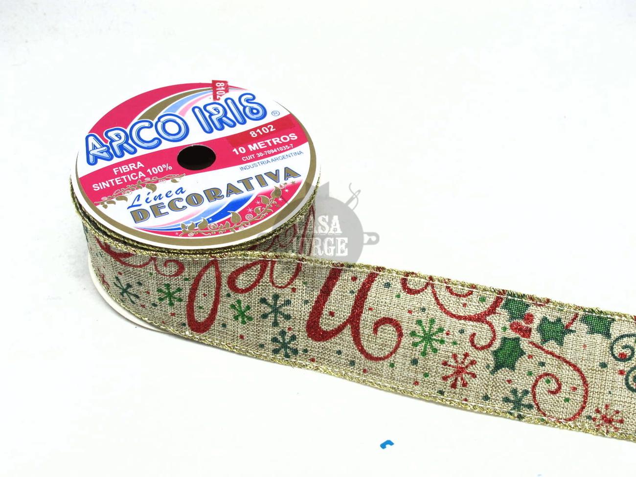 CINTAS FANTASIA NAVIDEÑA ART 8102 DE ARCO IRIS DE 38 MM POR 10 METROS