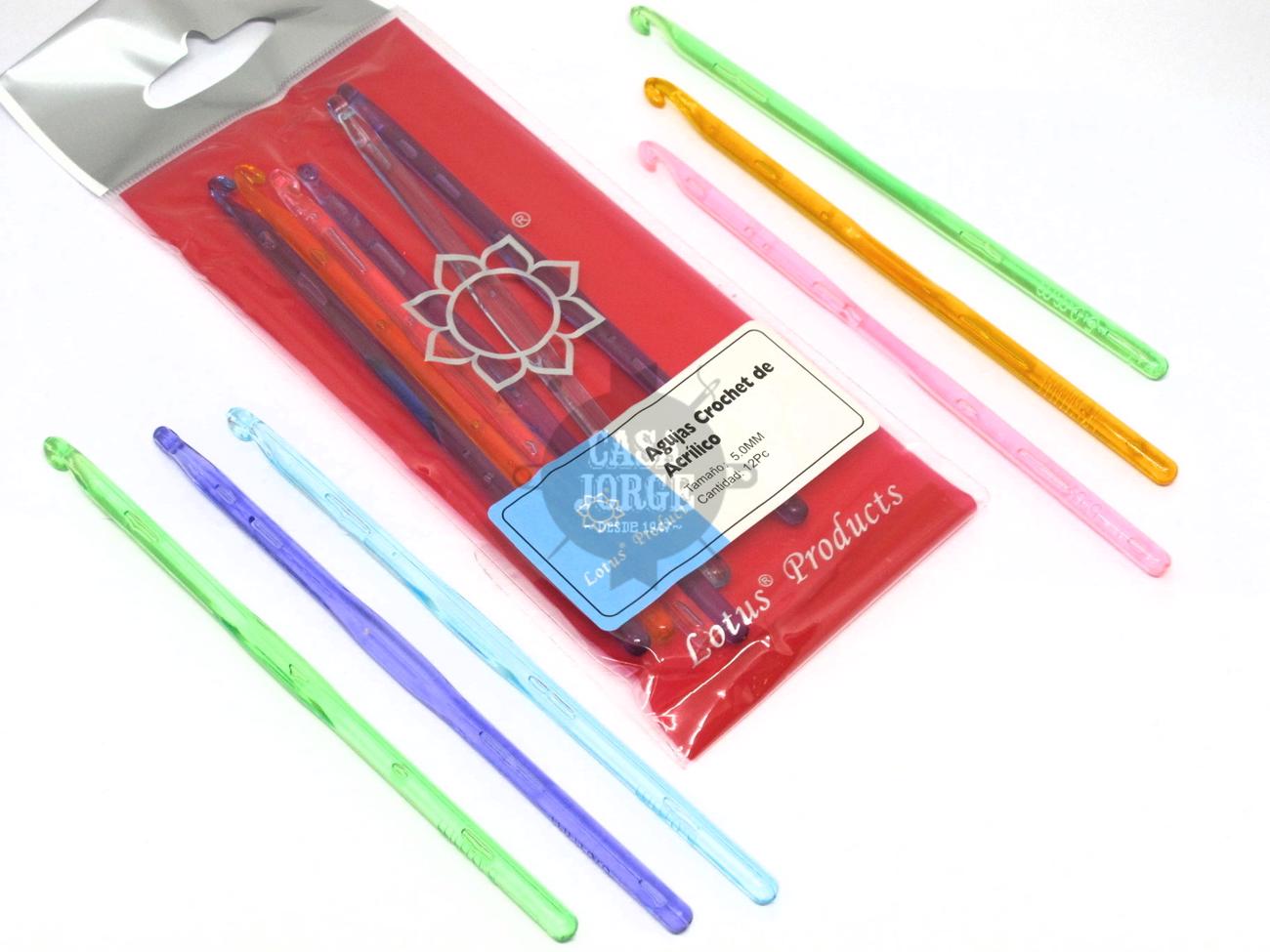AGUJAS CROCHET DE ACRILICO LOTUS NUMERO 5 POR 12 UNIDADES